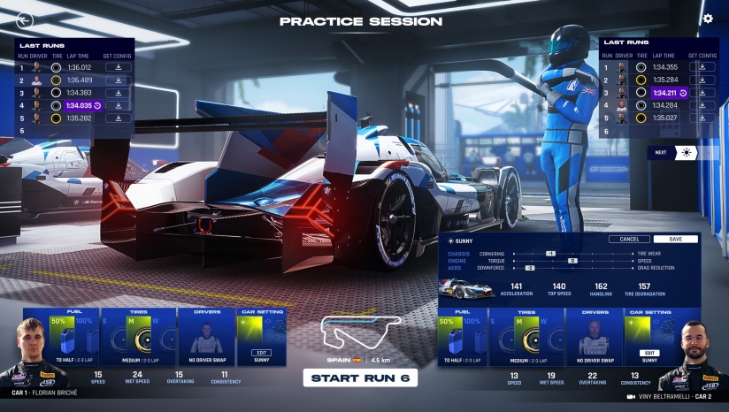 赛前调校:根据赛道特性(如天气、抓地力)定制赛车设置,选择轮胎策略(如两停或三停)。