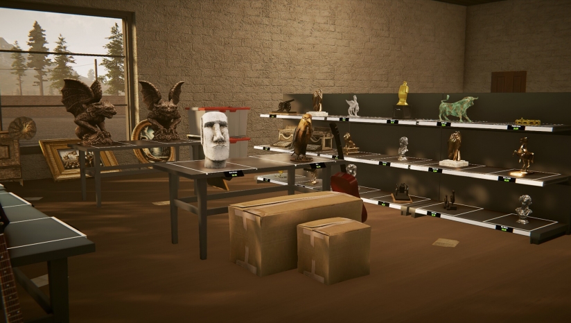 采用写实卡通渲染风格,细腻呈现仓库的斑驳锈迹、积尘物品与翻新后的鲜明对比。场景氛围营造突出:竞拍时聚焦手电光束下的局部细节,营造紧张感;店铺则色彩明亮,突出商品质感。游戏包含数千种高辨识度可交互物品模型,从复古收音机到外星金属碎片皆可细致检视。UI设计简洁高效,竞拍倒计时、物品价值评估浮窗等强化了经营操作流畅性。