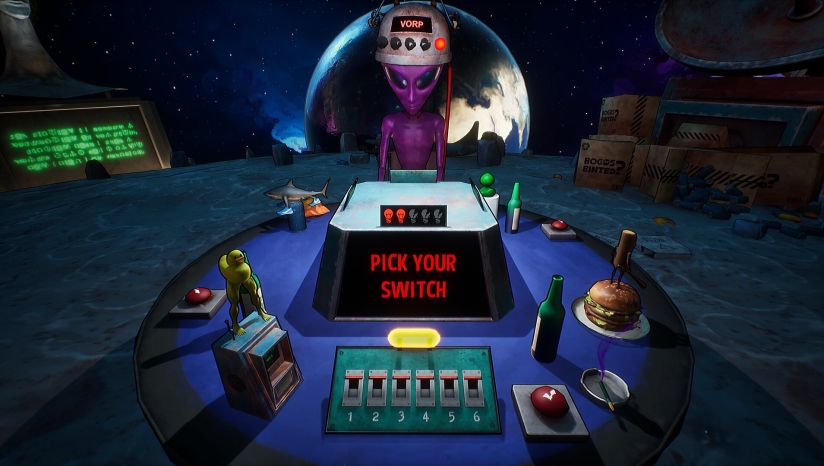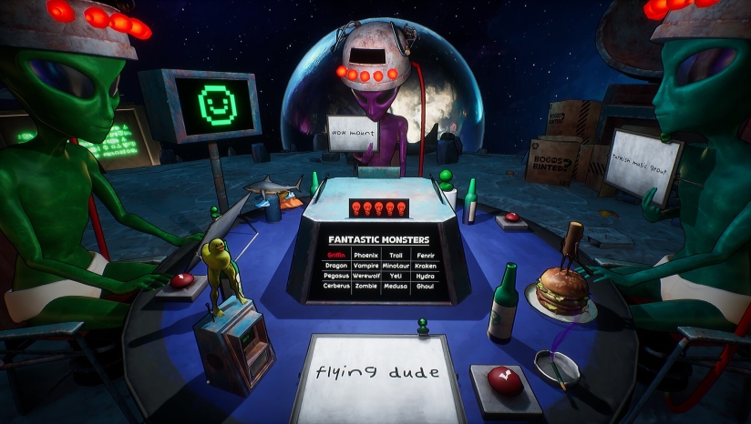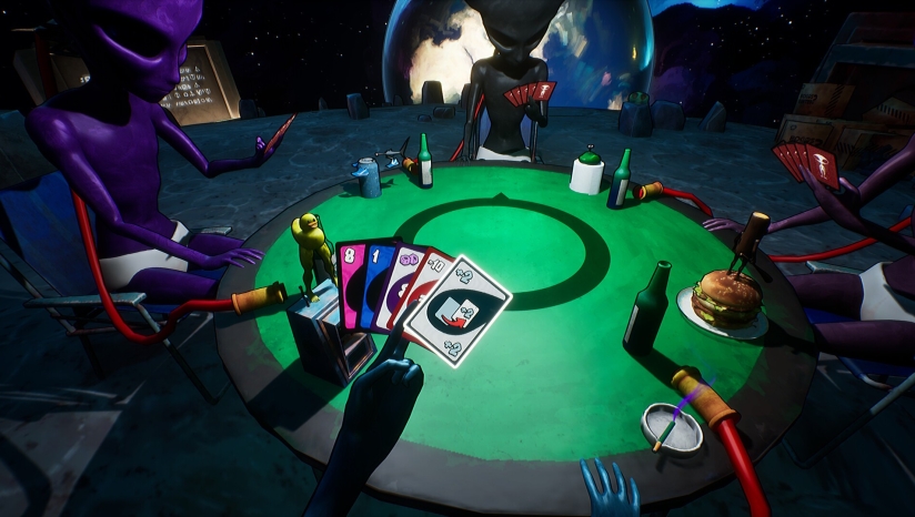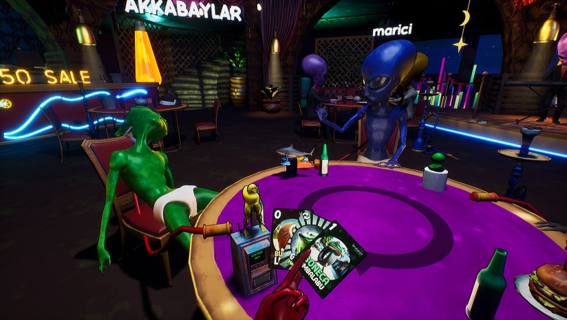《月球骗子》(Bogos Binted?)设定于月球表面的神秘外星牌局中。玩家将扮演宇航员或外星访客,参与一场由外星人举办的“罪恶之夜”卡牌派对。游戏融合科幻与荒诞元素,背景故事围绕月球基地的隐秘社交场景展开,玩家需在真假难辨的对手中运用策略与欺骗,争夺胜利。