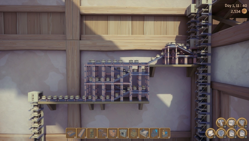 游戏内所有的传送带和设施都是基于体素对齐的,和积木设计类似,不必为产线对不齐而烦恼,尽情发挥你的想象力来搭建立体工厂吧!