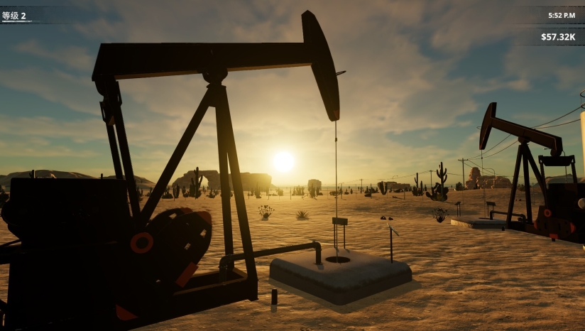 沙漠油田采用写实风格,设备升级后呈现赛博朋克式机械美学(如霓虹钻井台)。