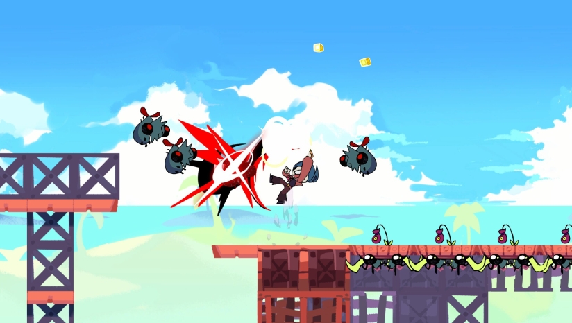 游戏采用全手绘动画风格,以鲜明色块、粗线条轮廓和动态帧数还原Flash时代视觉美感。场景设计充满想象力:从锈蚀的机械都市到异星生物巢穴,搭配夸张的敌人造型(如飞行恶魔、装甲巨兽)。特效方面,子弹轨迹、爆炸粒子与Boss登场动画均呈现流畅的卡通渲染,战斗节奏明快且富有冲击力。部分评测称赞其“色彩炸裂的画面完美复刻了千禧年初的街机神韵”。