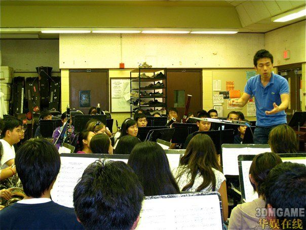 (图为锋山先生在美国指挥乐团为游戏生化危机5配乐)