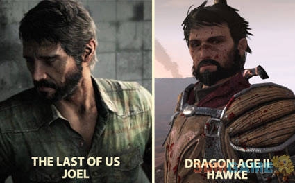 下图是顽皮狗的《美国末日》当中的男主角和《龙腾世纪2》中的Hawke对比,除了唏嘘的须渣,是否有点相像,猛男版的Hawke?