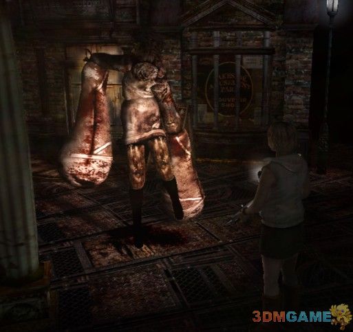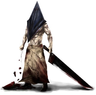 让我先从大家最喜欢的一个开始:在最近的游戏发售活动和电影首映式上,金字塔团长已经成为了这系列的非官方吉祥物。他现在基本上已经成为了一种文化符号:人们很难从一个还可以在DS上的体育游戏中客串的人物身上感到恐惧。但十年前《寂静岭2》推出的时候,作为一种未知的怪物,身形巨大、头戴帽盔的他绝对是一个可怕的存在。他首次登场就是站在一道栅墙之后,一动不动站着,死死的盯着你。这种感觉真让人不寒而栗。但更可怕的还不是这个,当你第二次遇见他的时候,他还在蹂躏着其他两个小怪,似乎在发泄这心中的怨恨。跟《生化危机2》中的涅墨西斯一样,他是无法战胜的,当他突然出现在你面前的时候,你只有一个字“跑”。