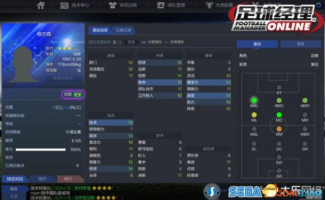 除了球员属性的更新,球员的入册和退役也是实时更新的一个重要内容。比如在18岁的巴西小将格尔森,被誉为后内马尔时代巴西的核心,如今在游戏中我们已经可以找到这位未来的球场巨星了。