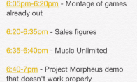 今日一份索尼E3 2014发布会日程表在网络公布,从中可以看到索尼的Wonderbook和备受玩家期待的《神秘海域4》都将在今年的索尼E3发布会上登场。虽然有部分转载媒体声称无法验证其真实性,但实际上这张截图来自于平井一夫的推特,也就意味着这份日程表正是索尼E3发布会的官方计划。