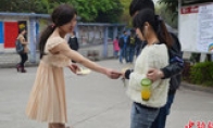 3月13日中午,四川泸州医学院一名大学生身着长裙、画着淡妆、蹬着高跟鞋反串女生向同学们推销卫生巾。这位名男生是护理专业学生,也是学校的创业先锋,每个月的卫生巾销售金额超过一万元。四川泸州医学院大学生男扮女装卖卫生巾 月入超万四川泸州医学院大学生男扮女装卖卫生巾 月入超万四川泸州医学院大学生男扮女装卖卫生巾 月入超万