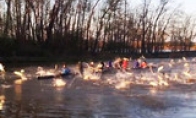 近日,美国华盛顿大学的学生在一片湖面上进行赛艇训练的时候,突然被成群跃出水面的巨型亚洲鲤鱼“袭击”。这一离奇的场面被本杰明·罗森鲍姆(Benjamin Rosenbaum)拍了下来。视频中,就在学生们在划着赛艇前进时,忽然有一群体型巨大的亚洲鲤鱼从赛艇周围的水面跃出,在空中不断飞溅,甚至有几条跳上赛艇。整个赛艇队简直就像被鲤鱼围攻了一样。据悉,亚洲鲤鱼体型巨大,体重可达100磅(约45千克),它们受到惊吓时便会猛地跃到水上10英尺(约3米)高的空中。