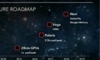 今天的GDC大会上,AMD已经正式宣布了地球最快显卡Radeon Pro Duo,采用两颗Fiji核心,理论运算性能超两倍TITAN X。这款显卡可以说是为28nm划上句号,今年的Polaris(北极星)新架构将采用14nm工艺。AMD次世代14纳米Radeon 400系列显卡架构视频介绍:与此同时,AMD也公布了下代和下下代显卡的路线图,分别代号Vega和Navi。其中,Vega(织女星)将在2017年推出,搭载HBM2显存,Navi会在2018年推出,采用下代显存技术。对比NV GPU路线图:其实Vega的名字之前也出现过(Vega 10),原以为是北极星的旗舰卡,但现在已被Polaris 10代替。意外的是,按照AMD的说法,HBM2显存要到2017年才能面世,那也就是说北极星要用的是GDDR5/GDDR