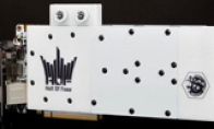 GTX 980 Ti这样级别的显卡,各大厂商肯定是要拼了命发挥的,比如说EVGA Classified Kingpin Edition、索泰AMP! Extrem Edition,都是使劲加强散热、提高规格、大肆超频。现在,影驰也拿出了他们的法宝,列入最顶级的HOF名人堂系列,最大特色就是纯白的造型,非常扎眼,从PCB电路板到散热器都是如此。该卡采用了非公版设计,但内部情况暂未公开,而散热方案采用Bitspower设计的全覆盖水冷,顶部延伸两个 水冷接头,背部还有同样全覆盖的金属辅助背板。值得一提的是,水冷散热本身是很薄的单插槽设计,但因为背部挡板的缘故,整体还是需要占用两个插槽位。辅助供电采用了疯狂的三个八针,即最大供电能力450W,超频必然是最大卖点了。PCB也是非公版的,但具体情况暂未公开,频率规格也