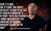 在最新一期的BioWare Pulse(BioWare官方电视节目)中,《质量效应》系列的首席剧作家Mac Walters称由于BioWare要表现薛帕德指挥官在战争期间的感情上的折磨,因此他(或她)将会是一个更明晰、更深刻的角色。在这一期的节目中,Walters不仅谈到了游戏的剧情编写过程,还解释了为何要在《质量效应3》中对斜坡进行上述的描绘。他说:“我们要在《质3》中做的众多事情之一是深化斜坡这个角色,因此要把他(或她)在整个战争期间的感情经历表现出来,要把这一步整合到故事中。没错,3代描绘的是大规模战争,要与巨型机器人作战,但故事中也有人类人性的一面。玩家是在进行角色扮演,并且扮演的是一个人类。因此在整个游戏过程中加入那个人类的感情因素,有何不可?”Walters补充说从游戏的总体来看,规模比前两作要规模