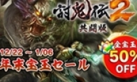 光荣特库摩旗下PS4/PSV《讨鬼传2:共斗版》于2016年12月22日到2017年1月6日开启新年福利活动《年末宝玉优惠》。——《年末宝玉优惠》可以回复行动力,以及扩张道具武器持有数上限的游戏内重要道具“宝玉”期间限定降价50%。