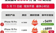 京东宣布iPhone 16 Pro首次支持国家补贴,至高直降2500元,其中128GB版本叠加国家补贴500元,到手价5499元起,支持12期免息。此外,iPhone 16 Pro 256GB限时优惠2100元,以旧换新补贴+消费券,到手6899元起,iPhone 16 Pro Max 256GB和512GB限时优惠2200元,以旧换新补贴+消费券到手价分别为7799元和9799元,支持12期免息。据媒体报道,日前,苹果向渠道商下发调价通知,苹果iPhone 16 Pro Max 所有版本降价160美元,对应1313.06元人民币;iPhone 16 Pro 128GB版降价176美元,对应1445.27元人民币,其他版本同样降价160美元。有渠道商认为,苹果此次调价是在为即将到来的618大促做准备。根据苹果2