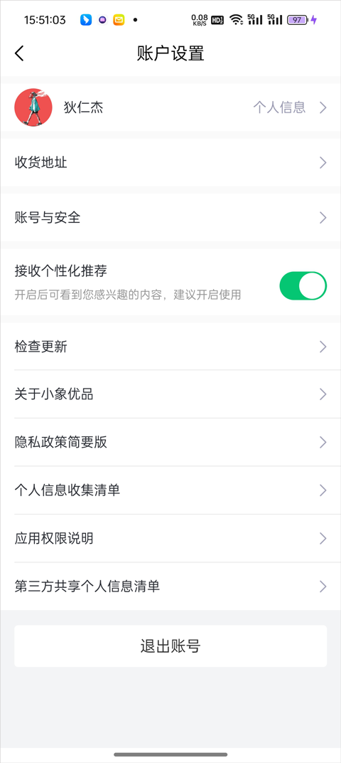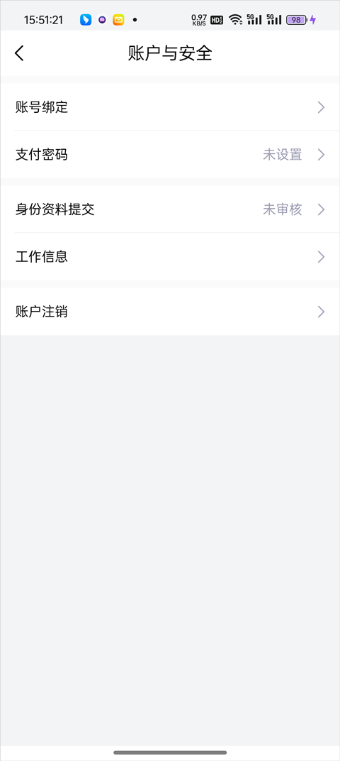 3、进入设置后选择账号安全;