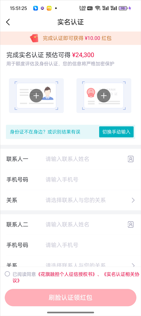5、最后提交需要实名的身份证进行实名认证即可。