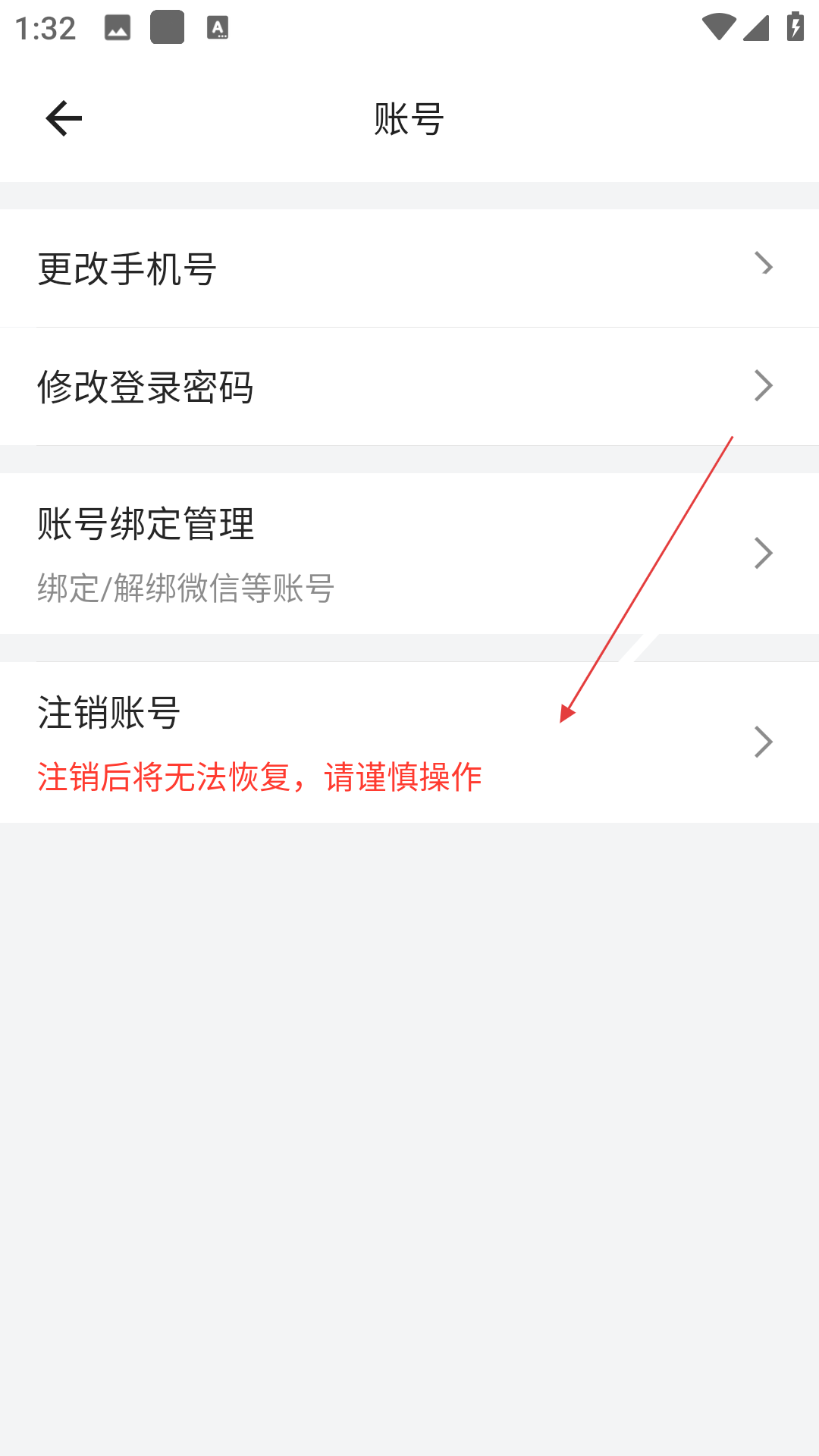 3、账号界面,用户可更改手机号、修改登录密码,进行账号绑定管理,还可注销账号,注销后将无法恢复。