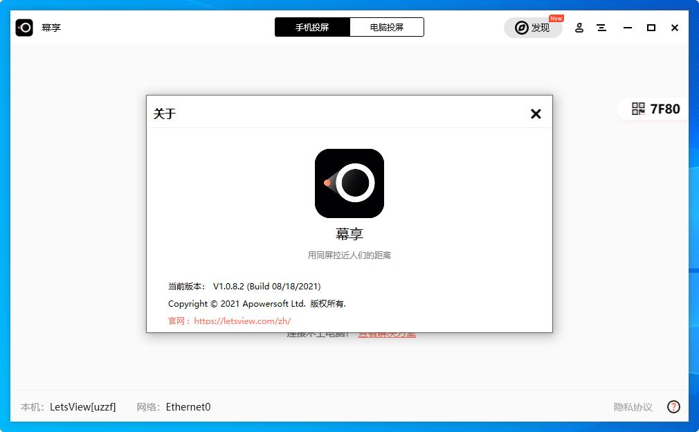 《幕享投屏》是一款实用的免费无线投屏软件,幕享支持多个平台同步,可以将移动端的画面投屏到电脑上面,操作简单便捷,界面简洁明了,是一款十分好用的投屏软件,感兴趣的小伙伴可以在本站下载体验。