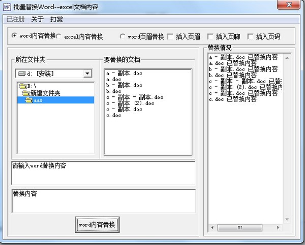 下载批量Word EXCEL内容替换工具是一款简易实用的EXCEL及Word文档内容的工具,如果是同一内容可以批量替换文档,节省操作时间,使用也非常方便,给用户带来便捷。有需要的小伙伴快来下载吧!