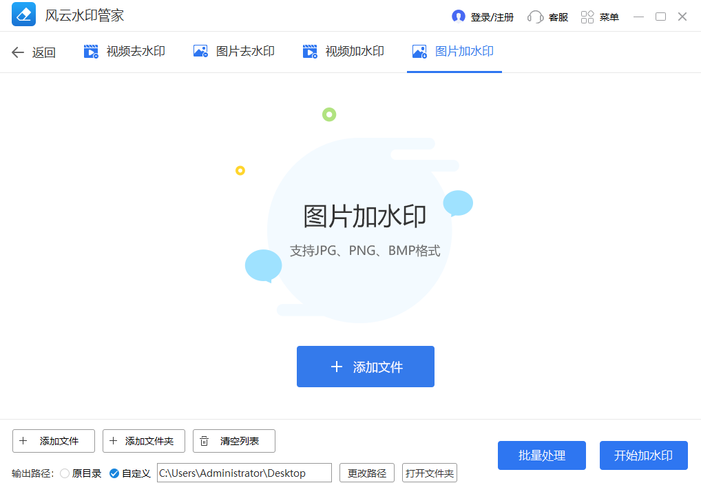 风云水印管家是一款专业的水印去除的工具软件,支持视频、图片去水印和视频、图片加水印,去除水印只需一键即可,十分方便快捷,界面简约,布局直观清晰,操作简单,极易上手,是一款不可多得的利器。
