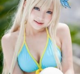 薄纱比基尼!白皙蓝系清新女Cosplay初音1733